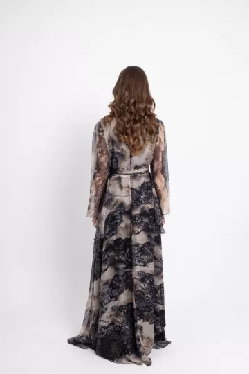 Φόρεμα maxi κρουαζέ με χρυσές λεπτομέρειες εμπριμέ μαύρο