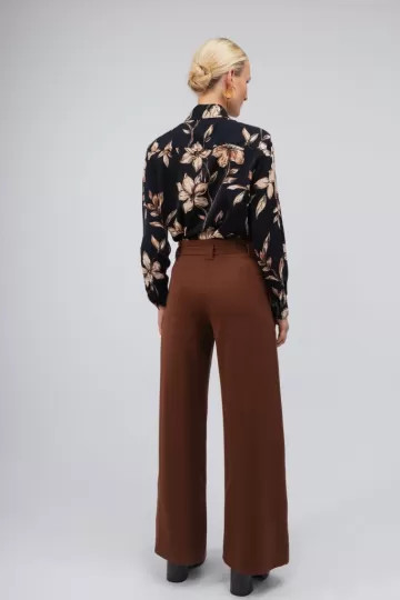 Παντελόνα ψηλόμεση με κουμπί σε ίσια γραμμή εκάι