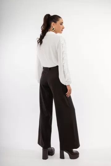 Παντελόνα ψηλόμεση με κουμπί σε ίσια γραμμή μαύρη