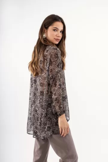 Πουκάμισο animal print με τριαντάφυλλα και χρυσοκλωστή