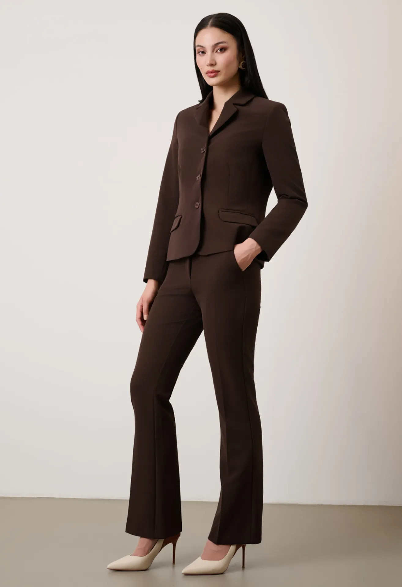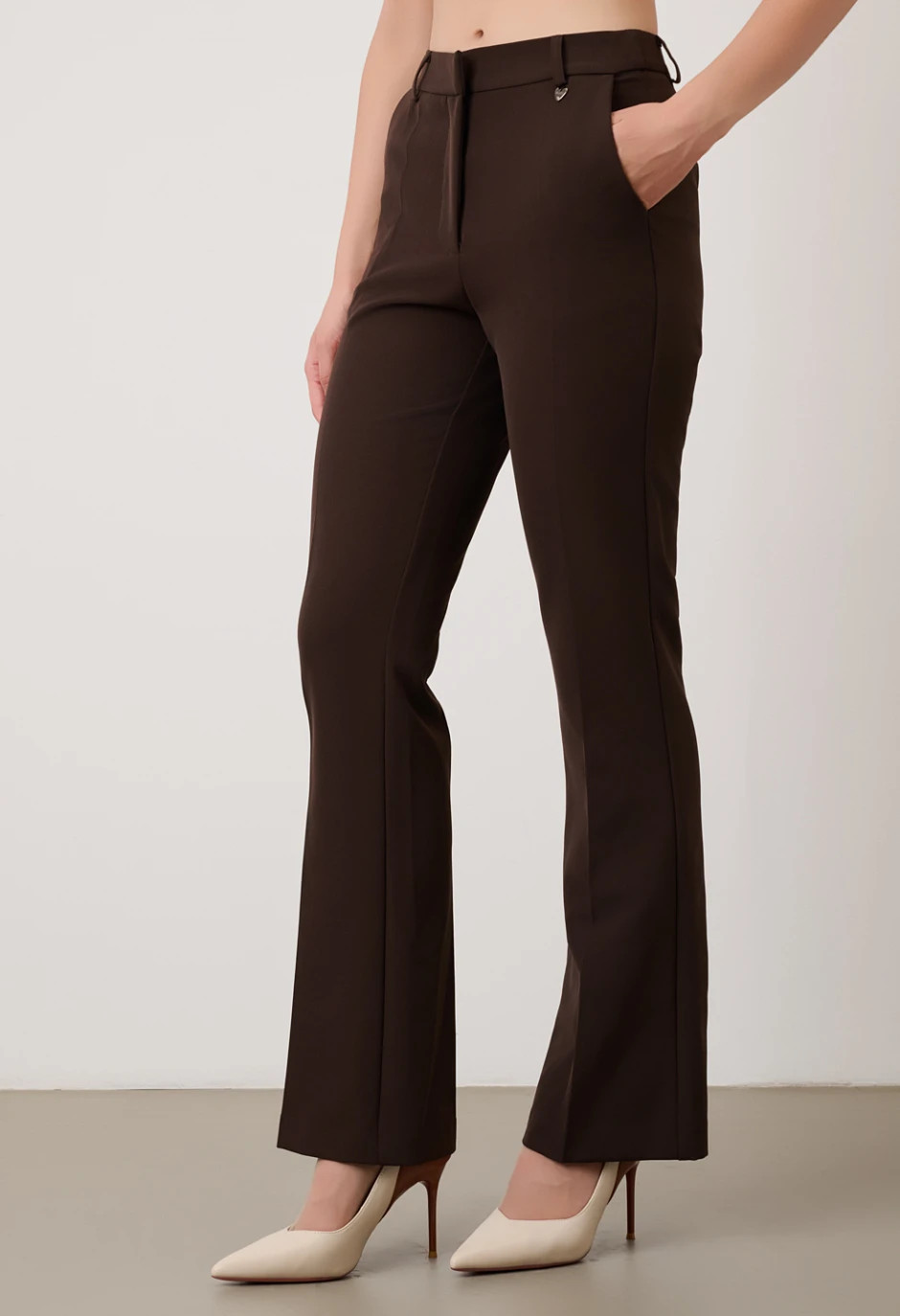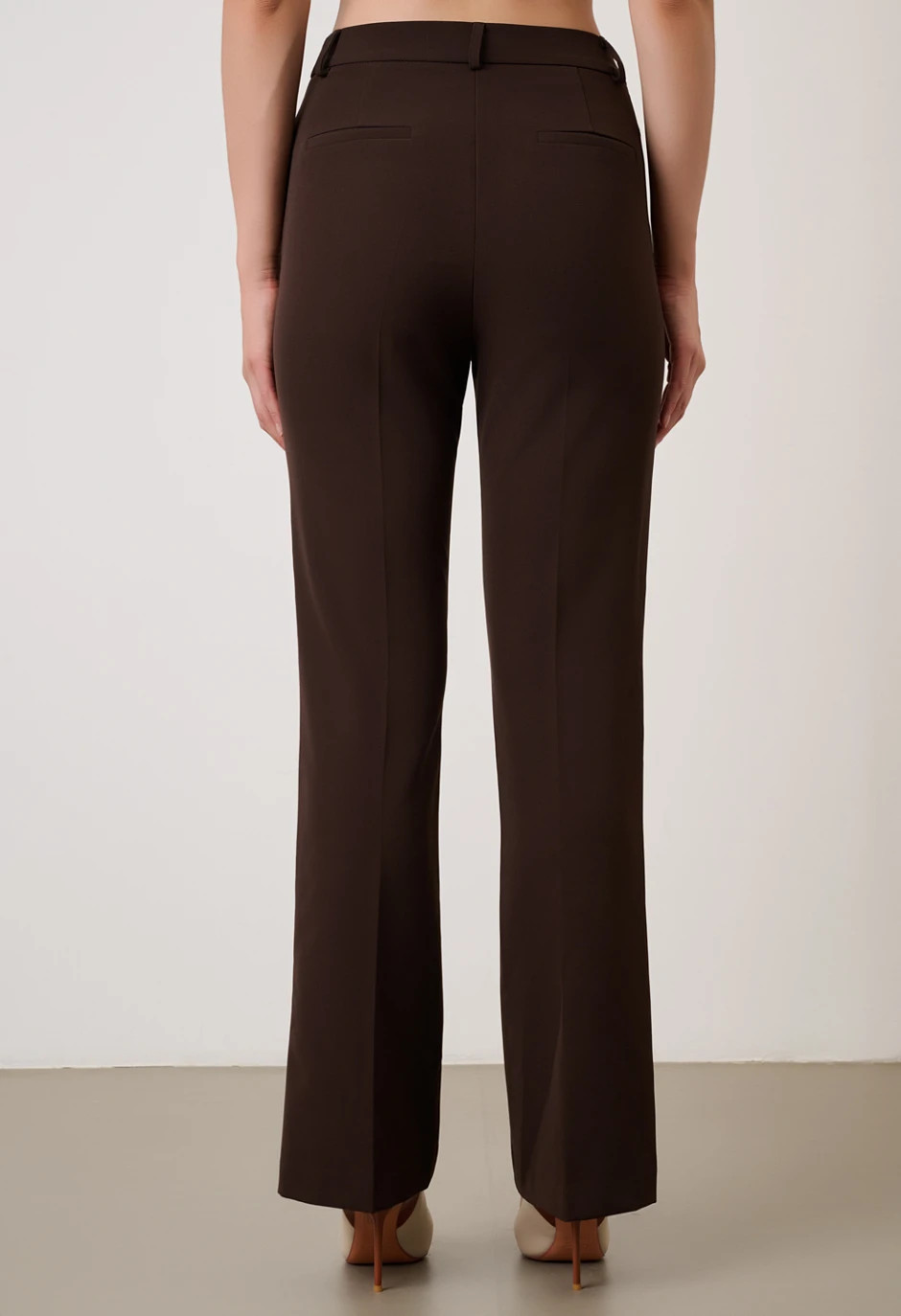 Ψηλόμεσο παντελόνι εβαζέ στο κάτω μέρος, κλείσιμο μπροστά με φερμουάρ, εσωτερικό κουμπί και κόπιτσα, τσέπες στο πλάι και τσέπες με ρέλι στο πίσω μέρος, κανονική εφαρμογή.
